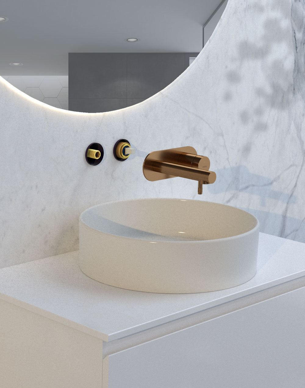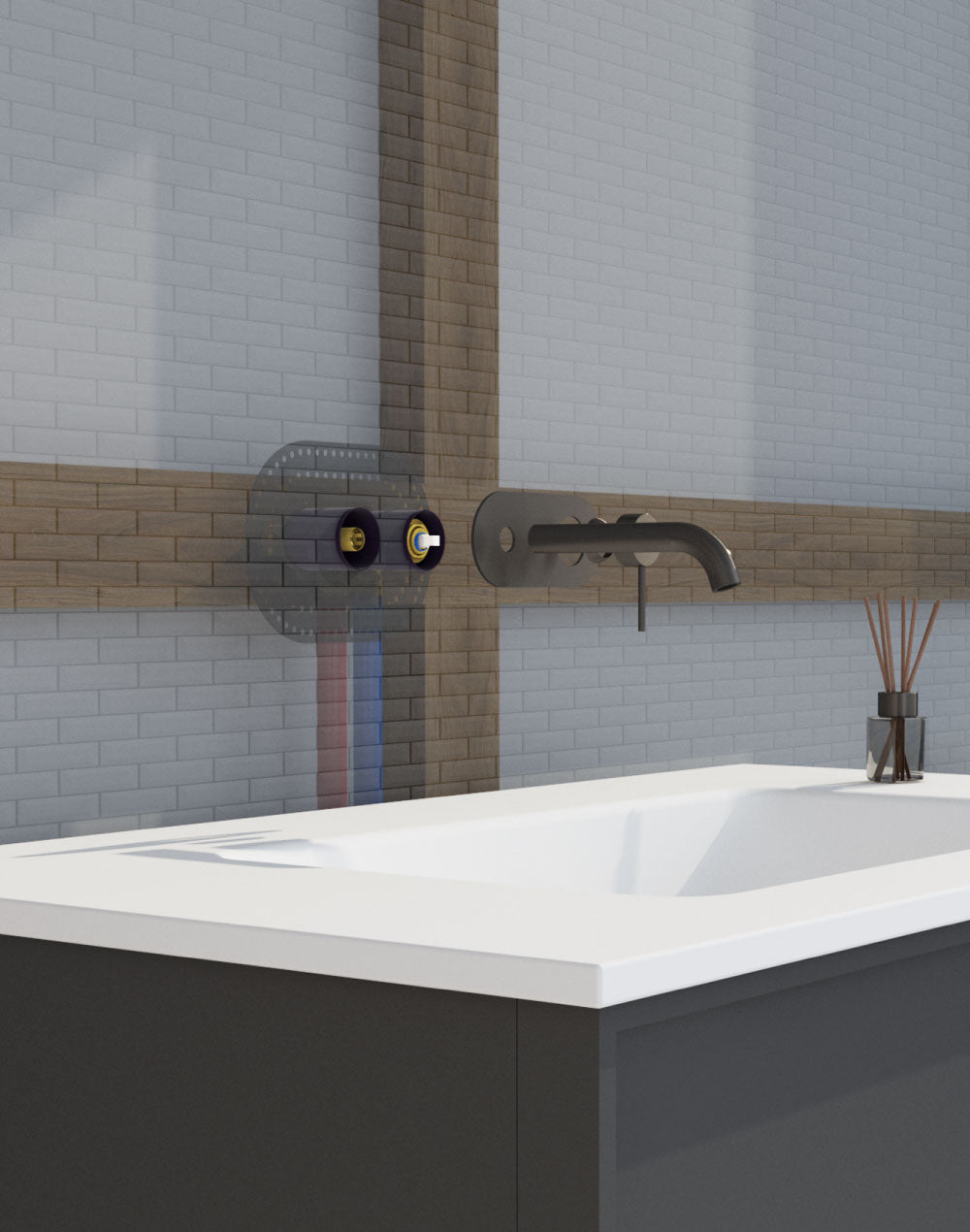 The waterproof sleeves ensure there is no possible leakage behind the wall in both the shower/bath and the basin settings.