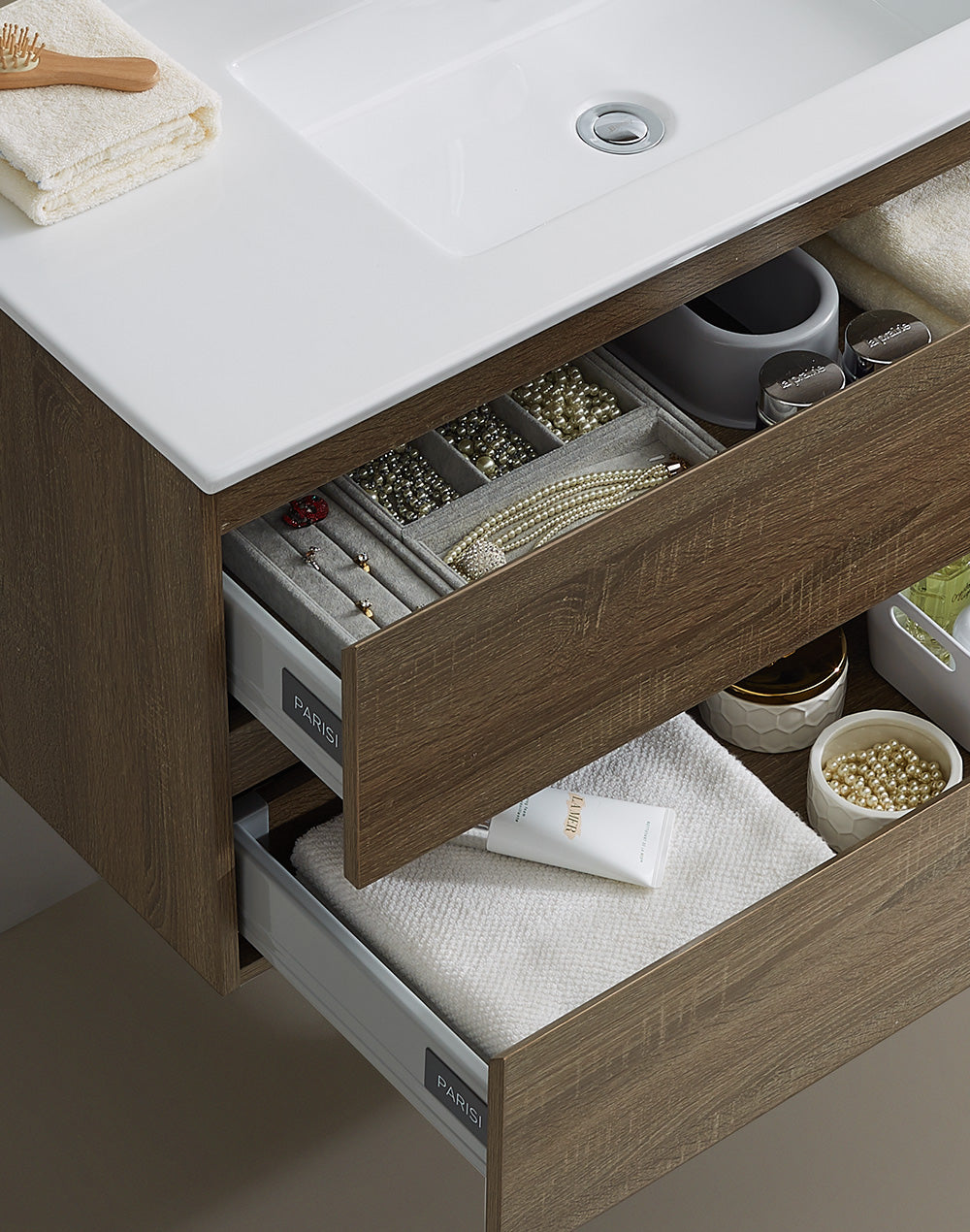 PARISI Multi-wood premium joinery provides peace of mind protection from general moisture, while simultaneously providing a far more aesthetically pleasing piece of bathroom furniture in the room.