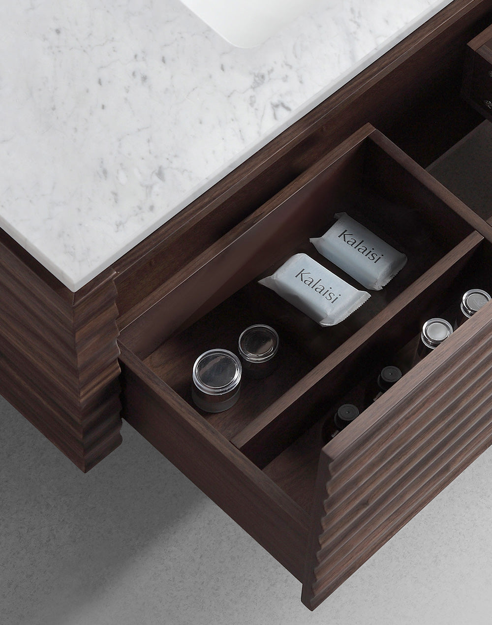 Our Multi-wood technology acts as the base to multiple finishes, it is compatible with textured timber grain laminate, painted polyurethane, and natural timber veneers; which is used on both the external of the cabinetry and the internal drawers and doors for continuity.
