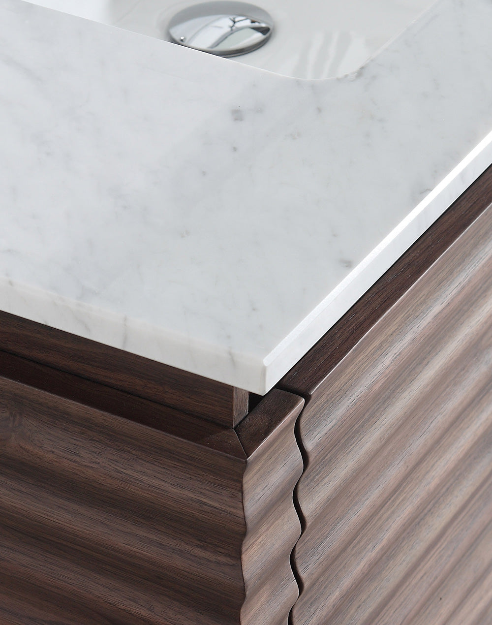 Marble is a natural material. So each vanity top is one of a kind. Marble vanity tops are made from natural stone. Marble is a product of nature and as such is prone to variations in colour, shade, pattern, texture, density, scratches, abrasions and pit. All of which are inherent in such natural materials. It is these characteristics that actually add to the beauty and charm of the material.