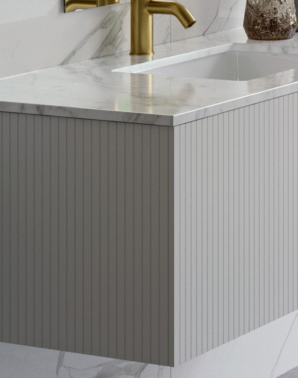 Unique marble veining, gives an elegant feel, pairs well with other materials for cabinetry, tapware and tiles. A timeless look that will add a touch of luxury and sophistication to any room. Its versatility allows it to be paired with any color palette, making it truly unique and one-of-a-kind.