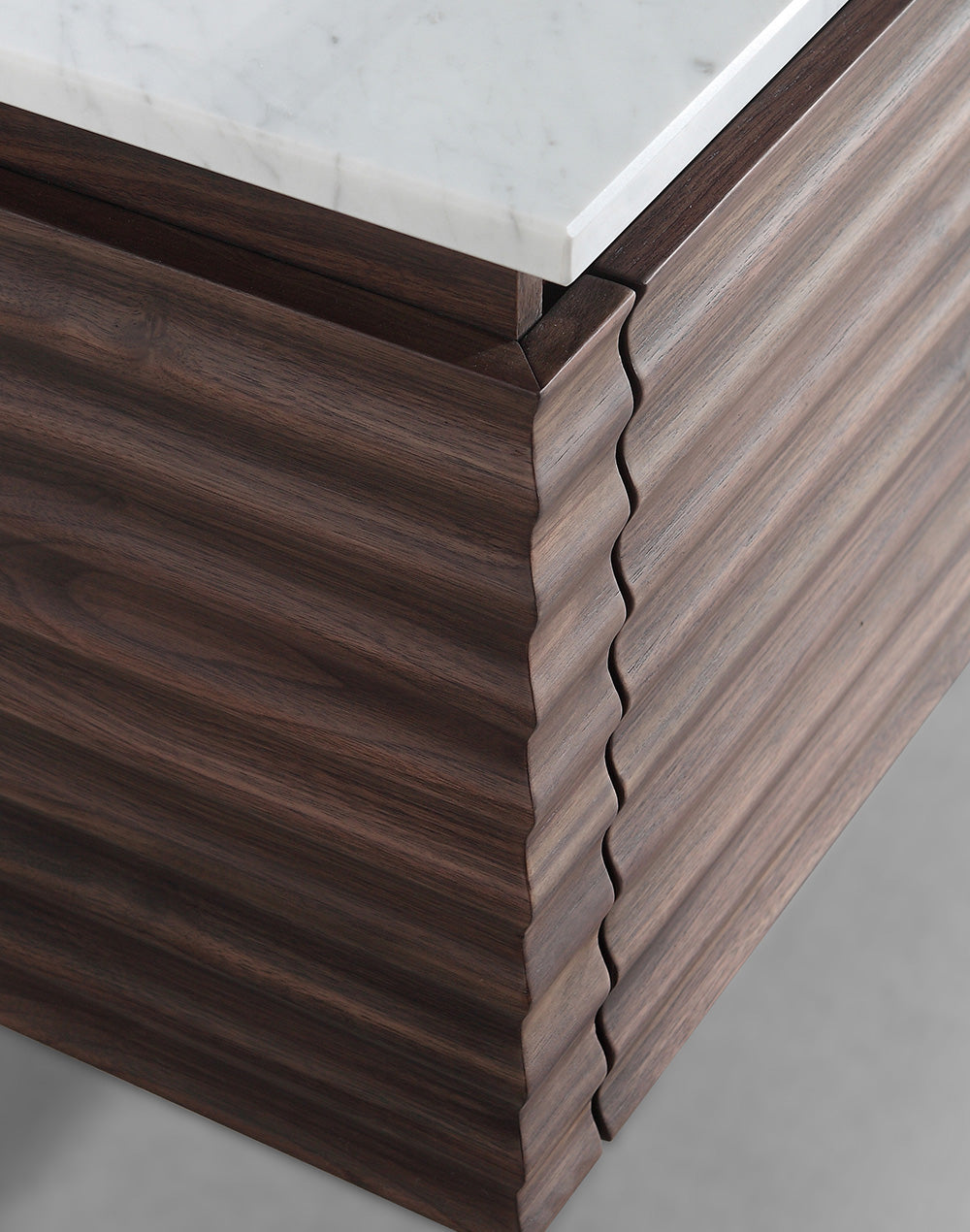 Natural Veneer, which is featured in our Loom Collection, is created by hand. The finish may be difference from sample or display, and the waves in the design is not perfect as the finishes are created with tools and Craftsman's variations.