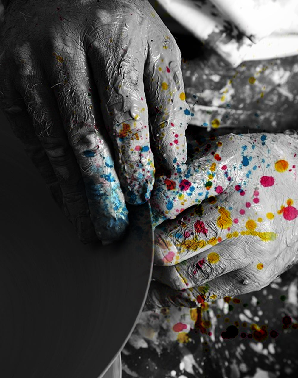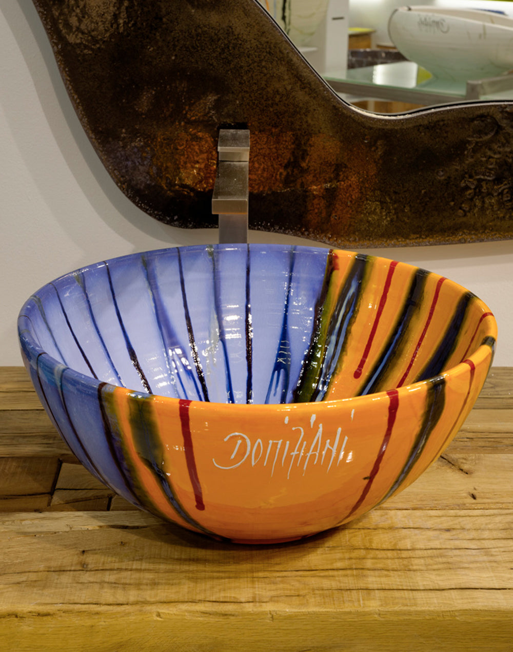 The process of working stone and volcanic lava is divided into different phases, adapted to the specific properties of the material, which are all carried out by craftsmen in the Domiziani atelier: cutting, glazing,hand-decoration, vitrification and double firing at more than 1000 degrees.