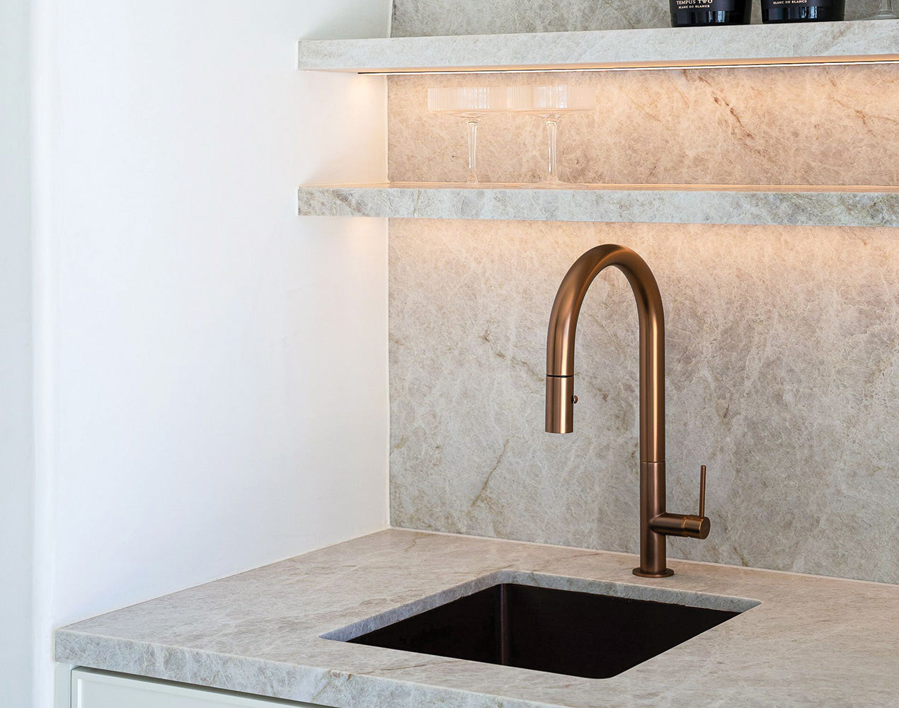 The property includes four resort-inspired bedrooms with ensuites fitted with PARISI tapware. Warmth exudes from the matt bronze tapware, showers and accessories throughout the resort living style and retreat spaces to effortlessly offset the contrasting marble and limestone finishes.