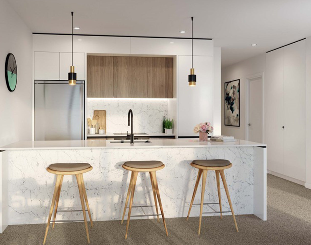 Each apartment is appointed with premium European fittings by PARISI featuring Slim bathware, L’Hotel Suite and Quasar tapware. While tiled bathrooms, contemporary light fittings and modern fixtures come as standard, creating living spaces to show off; and bedroom areas to retreat to after a long day of work or play.