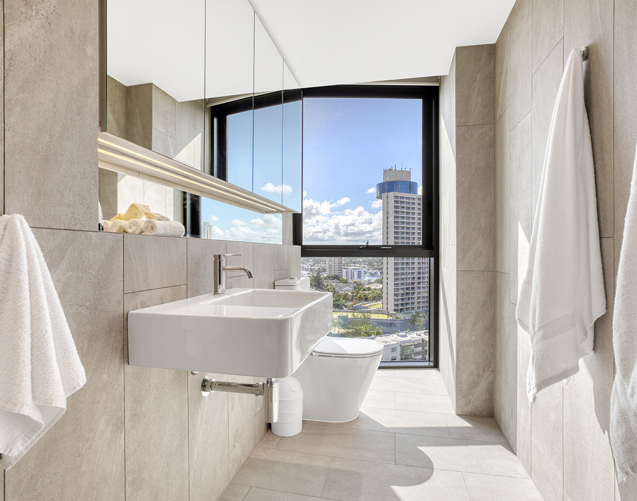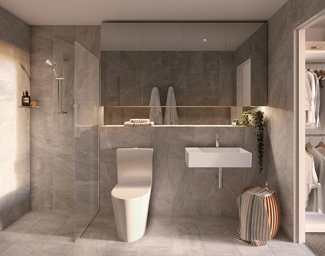Each apartment is fitted with premium PARISI bathware and create an experience second to none, allowing for gorgeous living and bathroom spaces as standard. These include the L’Hotel Wall Faced Suite/Pan, Quadro Basin and Envy Tapware.