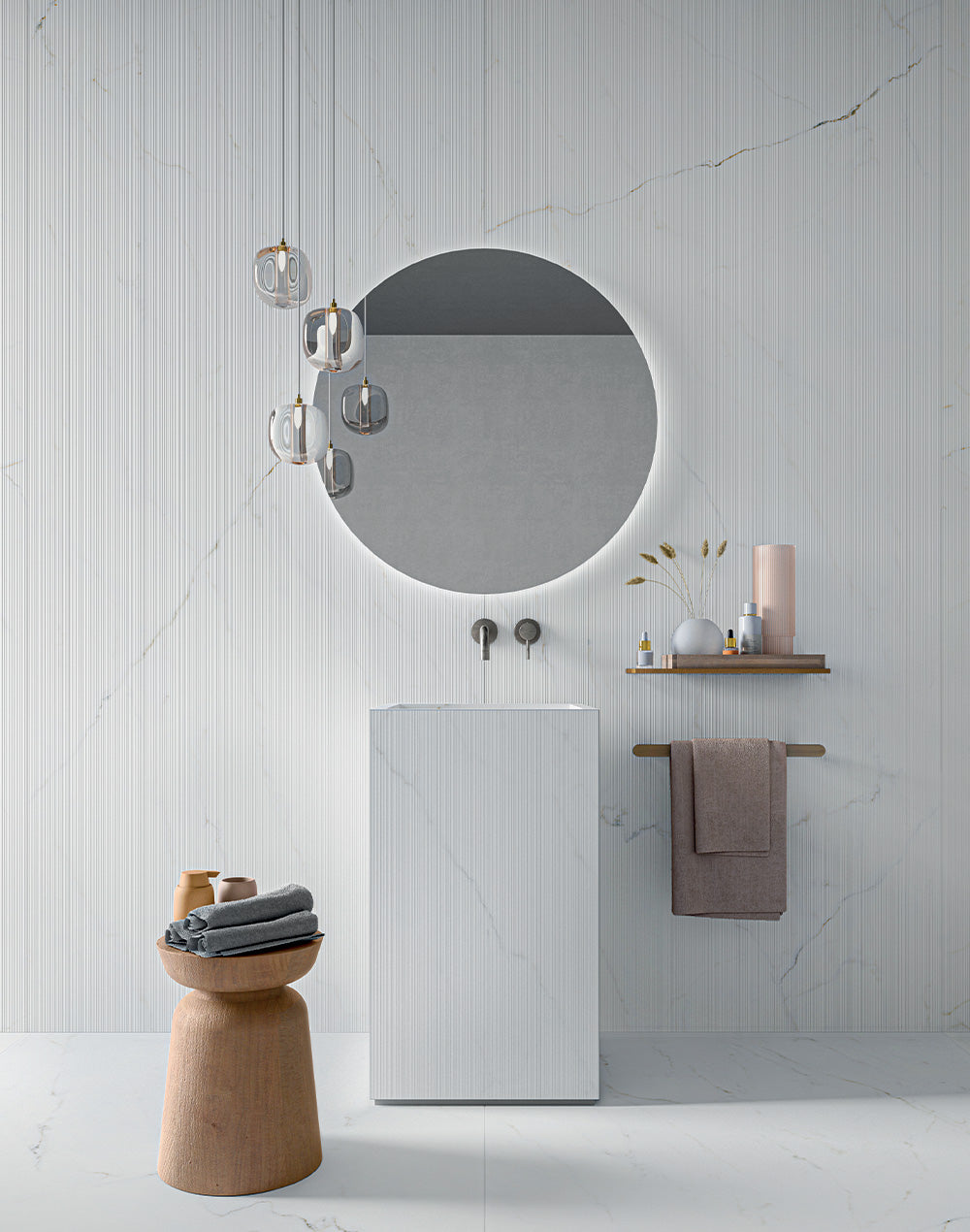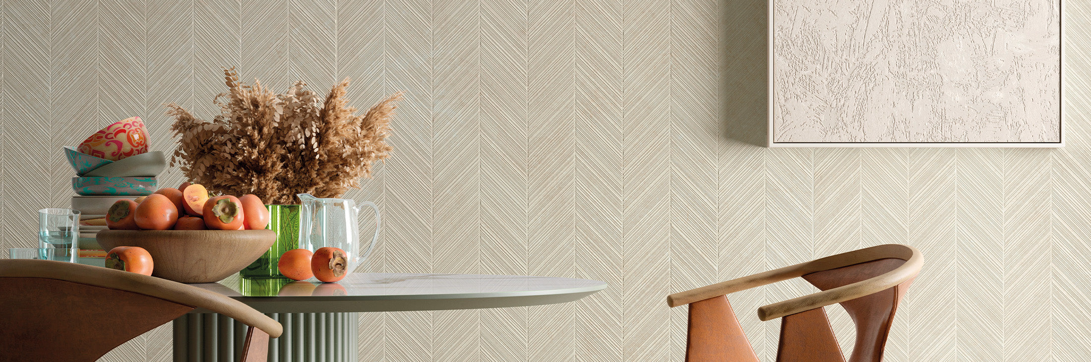 4 DEEP is a unique collection of the best-known stones used in architecture, elevated to their highest aesthetic potential. The line and arrow style surfaces offer a new appealing decoration that adds surprising depth to surfaces.