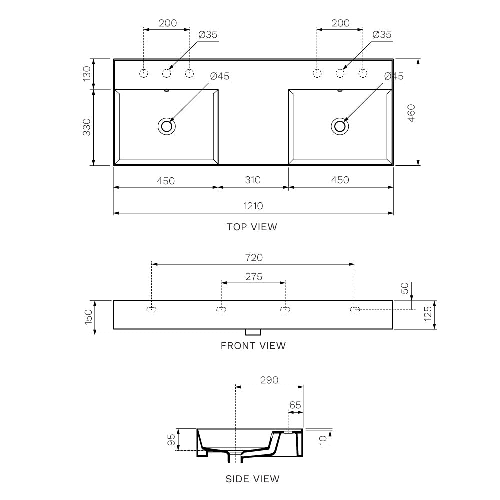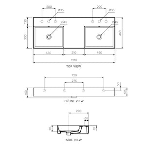 Twenty 120 Double Bowl Bench Basin